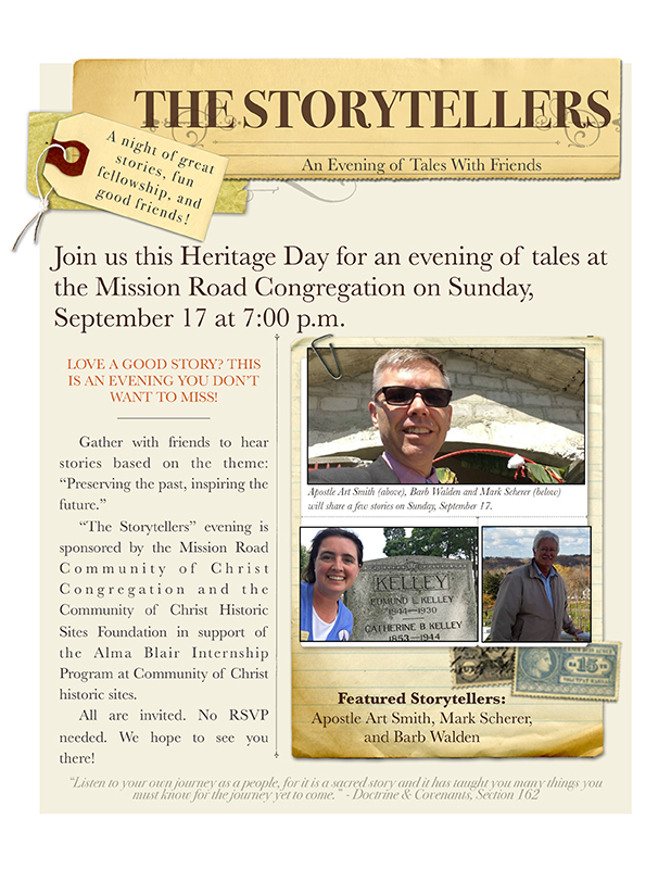The Storytellers evening is sponsored by Mission Road congregation and Community of Christ Historic Sites Foundation in support of summer interns who share the church’s stories at our historic sites.